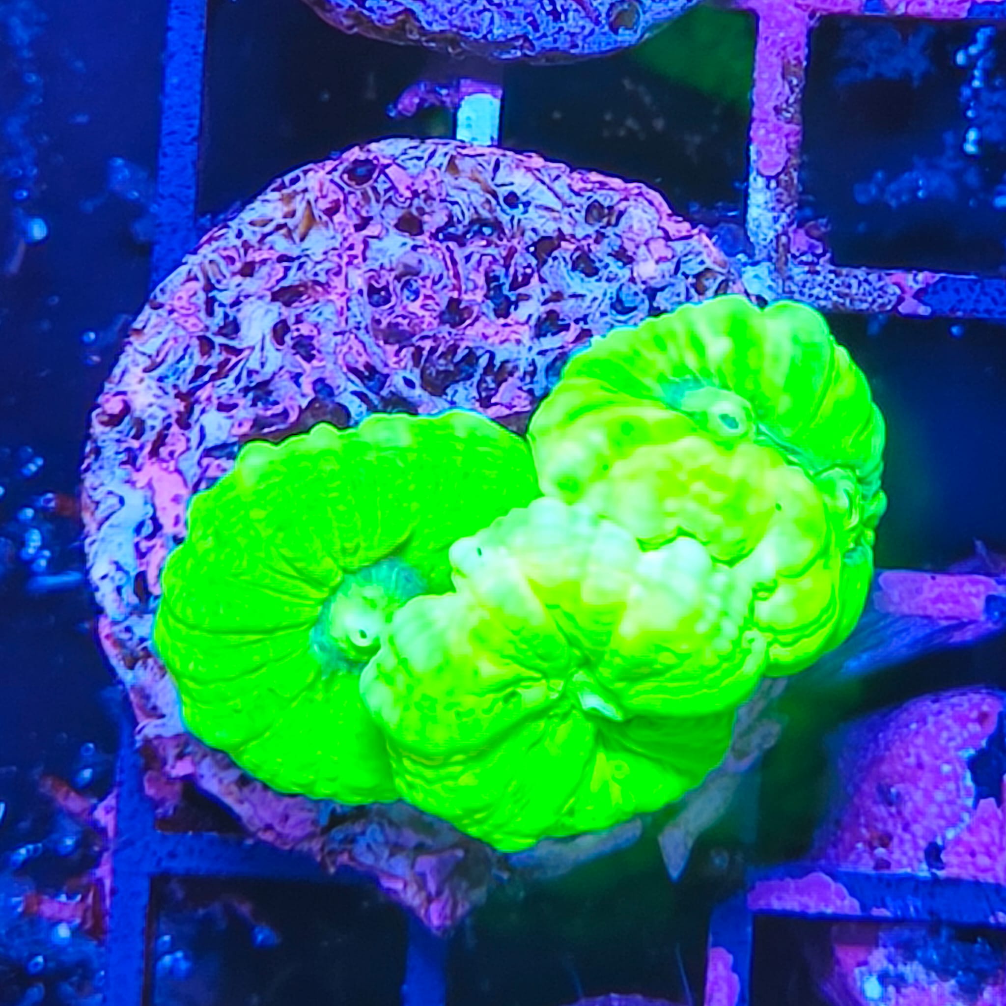 Los corales Caulastraea son conocidos por sus colonias ramificadas o en forma de arbusto, con pólipos que se agrupan en discos pequeños. Sus tentáculos son alargados y ondulantes, capturando partículas de alimento y contribuyendo a su belleza visual. Los colores de Caulastraea varían desde el verde, azul, morado, amarillo, hasta tonos más raros, como el naranja, lo que lo convierte en una excelente adición a cualquier acuario marino.
