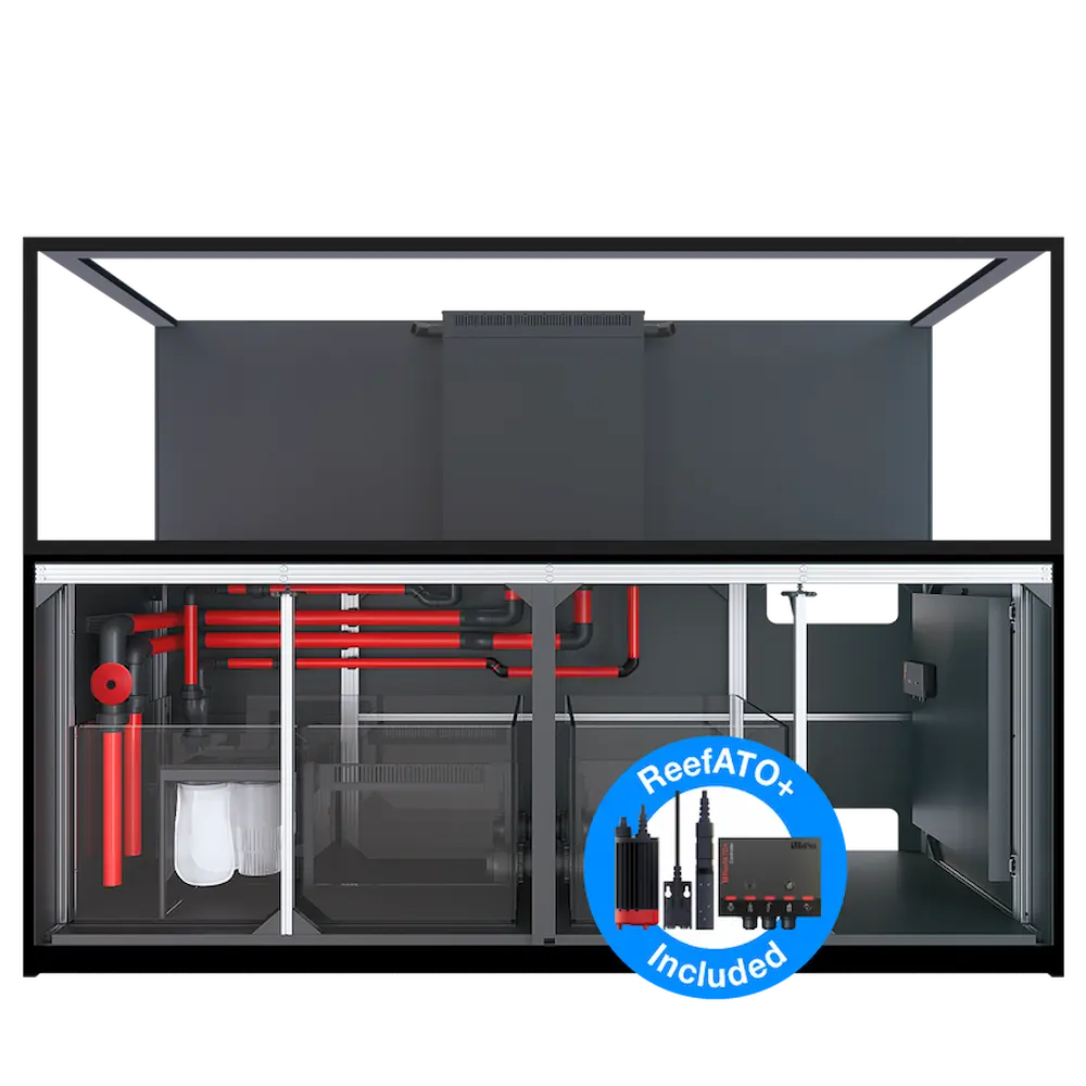 El sump incluido está optimizado para un rendimiento superior, con sistema refugium-ready, filtración silenciosa, doble retorno y un sump principal con extensión, lo que facilita el mantenimiento y la personalización del sistema. Además, incorpora un panel lateral deslizante ideal para instalar controladores y mantener una gestión ordenada del cableado.