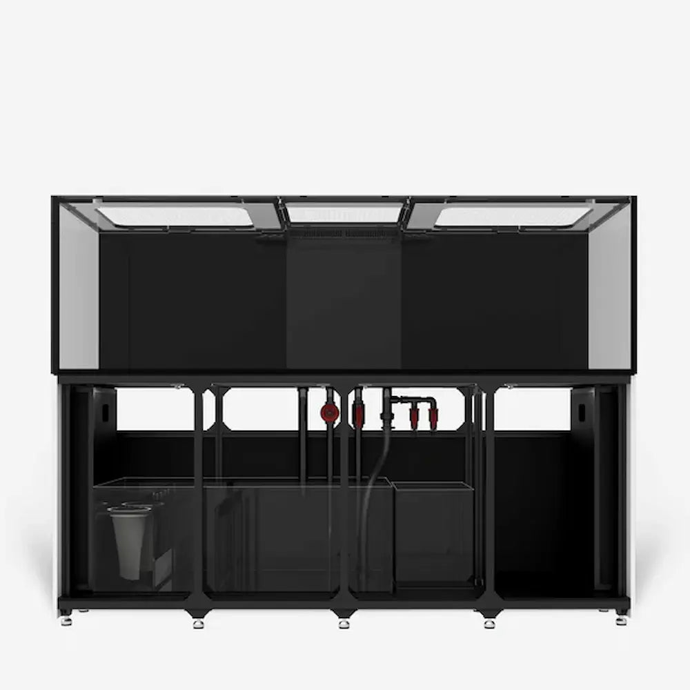 El sistema incluye un sumidero (sump) de alto rendimiento, optimizado para una filtración silenciosa, estable y de gran volumen, con compartimentos dedicados para skimmer, reactor, refugio, bomba de retorno y depósito de reposición (ATO). El mueble de aluminio anodizado resistente al agua proporciona una base sólida y segura, con paneles magnéticos que facilitan el acceso y el mantenimiento del sistema.